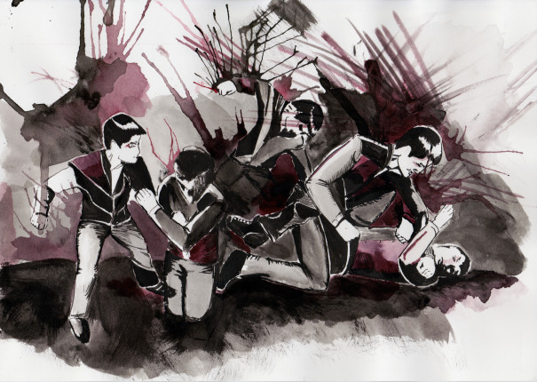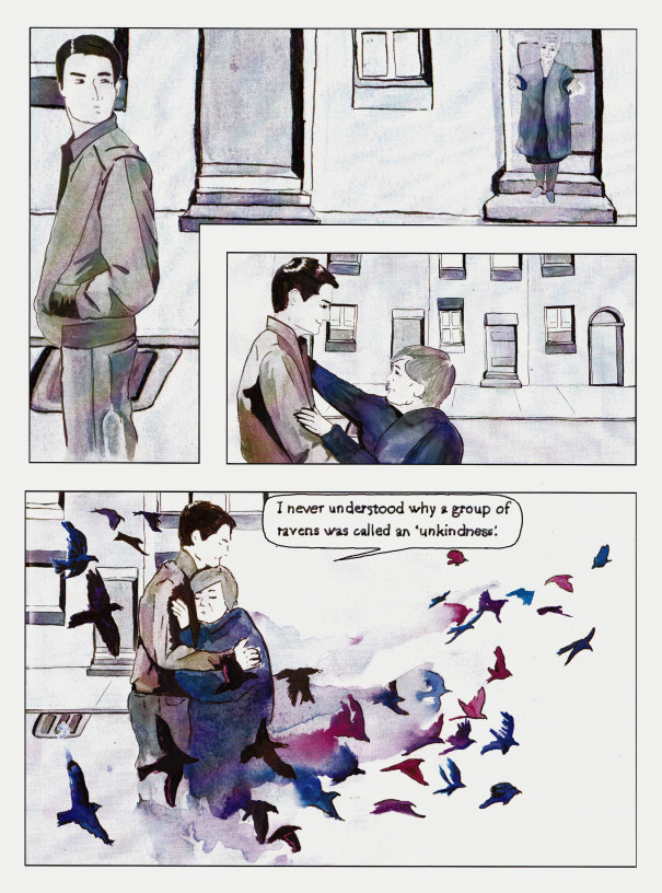 I produced this comic for my Graphic Narratives class at The University of Melbourne. The Morrigan has aged and is living in one of the rougher towns of Ireland, missing her glory days when people went to war under her banner. When a man is killed in a violent fight in her neighbourhood, he asks her to perform her duty one last time by taking him to heaven, as was her purpose when she was a young goddess.